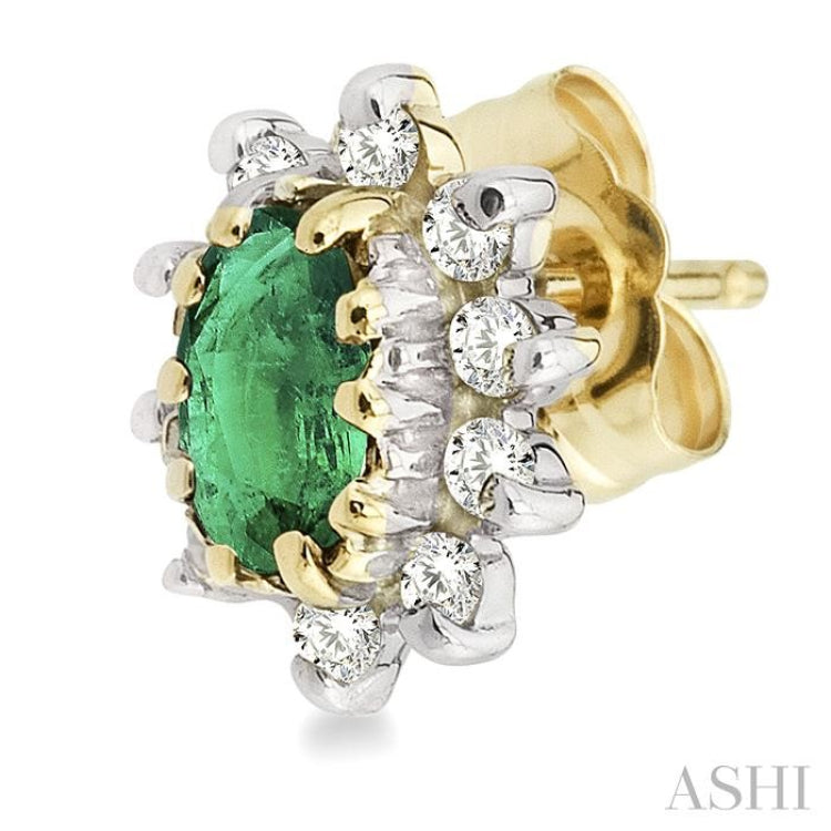 5x3MM Oval Cut Emerald and 1/4 Ctw Round Cut Diamond Earrings in 14K Yellow Gold