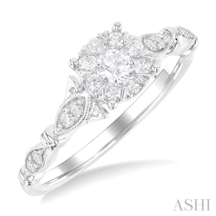 3/8 Ctw Round Lovebright Diamond Engagement Ring in 14K White Gold