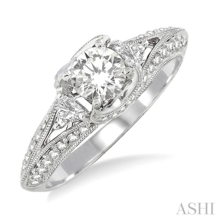 1/2 Ctw Round and Trillion Cut Diamond Semi-Mount Engagement Ring in 14K White Gold